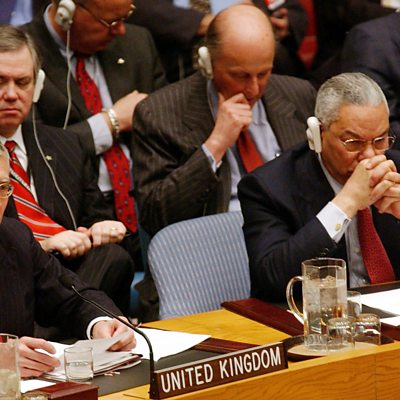 There was no support from the UN Security Council for the UK to go to war in Iraq "despite sending British ministers around the world to try and get that support", a former Foreign Office adviser has said. Michael Williams worked for both Robin Cook and Jack Straw at the Foreign Office from 1999 until 2005. He says he felt President Bush's administration, with support from Tony Blair, had a clear intent to keep the UN out of that decision, something that nearly "broke" Kofi Annan, the then UN secretary general. (Photo: Jack Straw and Colin Powell at the UN Security council Credit: Getty)