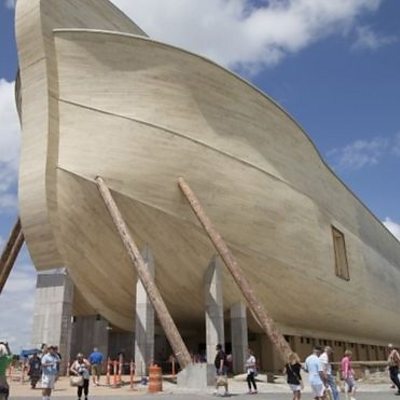 In a big field in the US state of Kentucky, a new exhibit has just opened to the public: a 510-foot, $100m replica of Noah's Ark. It's been built by a Christian group that believes in the literal truth of the account of the flood in Genesis. Joe Boone is from the Answers in Genesis project which built the ark. He told us what tourists will see when they visit. (Picture: The Noah's Ark attraction at a theme park in Kentucky. Credit: AP)