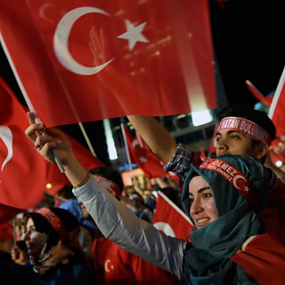 This week, Owen Bennett Jones is in Istanbul for a special edition of the programme looking at the aftermath of the failed coup attempt in Turkey. We ask who was really behind the putsch and what will be the impact of President Erdogan’s purge of tens of thousands of people from the armed forces, the judicial system and from academic institutions. With Owen will be a panel of guests from across the political spectrum, as well as a former senior member of the military. They’ll discuss the future of Turkish democracy after the violent upheaval and uncompromising government response. Photo: Pro Erdogan supporters at a rally in Istanbul following the failed military coup attempt of July 15. Credit: Daniel Mihailescu/AFP/Getty Images