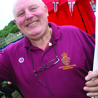 Alan from The Royal British Legion positioned himself next to the ss Great Britain hoping to raise money.
