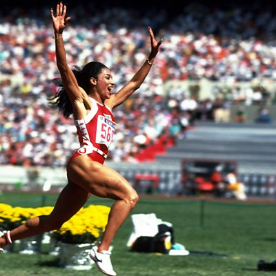 'She just made it look so easy. It was style, beauty and grace in one.' Florence Griffith-Joyner (named Flo-Jo by her fans)'s husband Al Joyner remembers her winning gold and breaking the world record in the 200 metres women's final at the Olympics in Seoul 1988. Picture: Florence Griffith-Joyner, Credit: Getty Images Sport.