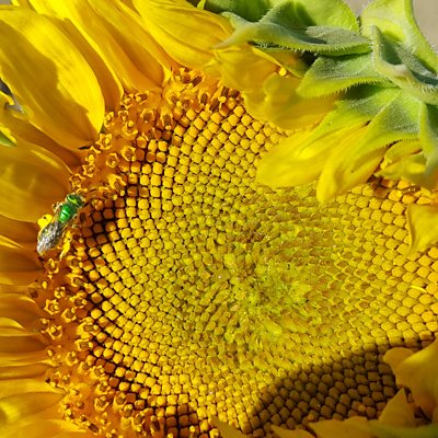 Professor Stacy Harmer, of the University of California Davis, explains how young sunflowers track the sun as it moves from east to west. It’s all down to the internal clock in the plant’s cells interacting with hormones that bend and stretch the stem. Image: Ben Blackman/UC Berkeley
