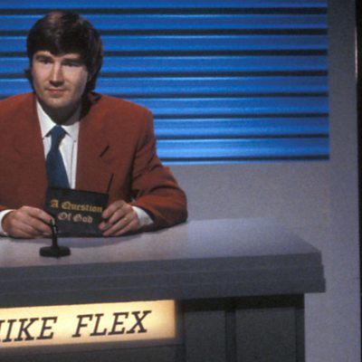 Mike Flex quizzes contestants in this clip from Radio Active starring Angus Deayton and Geoffrey Perkins. First broadcast on Radio Active, 18 October 1986.