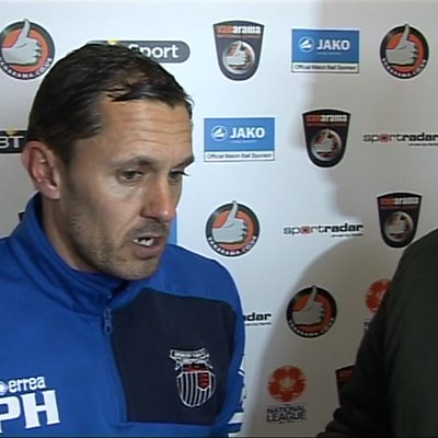 Grimsby's Paul Hurst talking to John Tondeur after their 2-1 defeat to Leyton Orient.