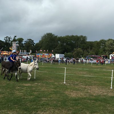 Highlights from the Donkey Derby. Louise Sayers competes in the all important media race.