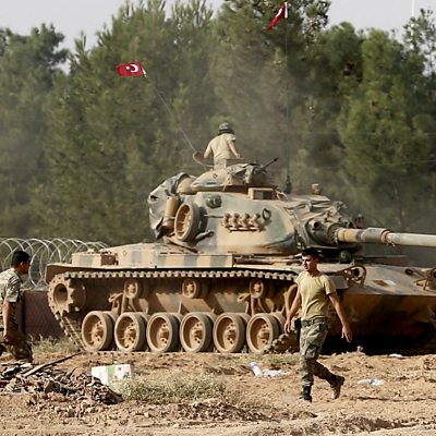 Turkish tanks have crossed into northern Syria in an offensive to drive the so-called Islamic State group out of a key border town. Michael Stephens of the Royal United Services Institute told Dan Damon this is Turkey's first big battle outside its borders in the Syrian war. (Photo: Turkish tank near Turkish-Syria border during operation against so-called Islamic State; Credit: European Photopress Agency)