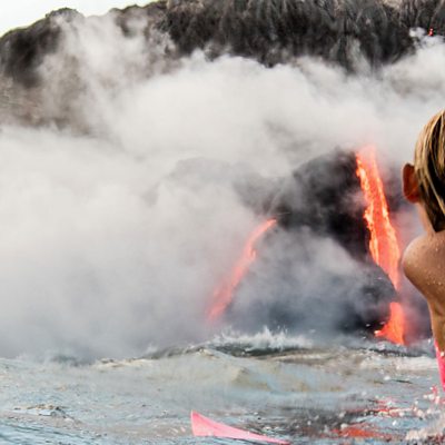Alison Teal grew up hearing stories of the majestic Hawaiian goddess of Fire, Pele. So, when Hawaii's Kilauea Volcano was erupting, she didn't have your normal reaction. Rather than running away, the adventurer took her surfboard, and hopped in the water.
