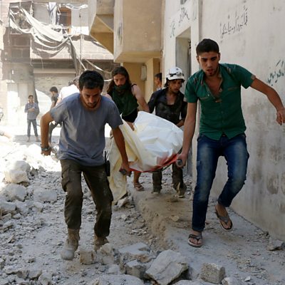 Abdulkafi Alhamdo is an English teacher who lives in rebel-controlled eastern Aleppo. His house is right by the front line, and while there are fewer air strikes than in other parts of the city the area is very vulnerable to sniper fire. He spoke to Owen Bennett Jones for Newshour Extra. (Picture credit: Getty Images)