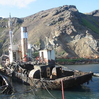 The Viola has been abandoned off the coast of South Georgia since the Falklands.