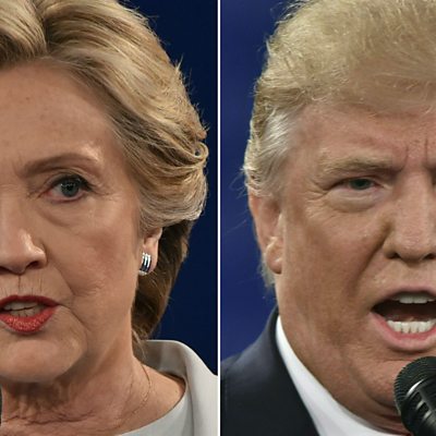 LONG: As Donald Trump faces new allegations of sexual assault, Dan Damon gets reaction from two Republicans in the UK: the commentator Charlie Wolf; and Stacey Hilliard, chairman of the American Voices International political action committee. First, what does Stacey make of the allegations? (Photo: Democratic presidential candidate Hillary Clinton and Republican presidential candidate Donald Trump. Credit: Getty Images)