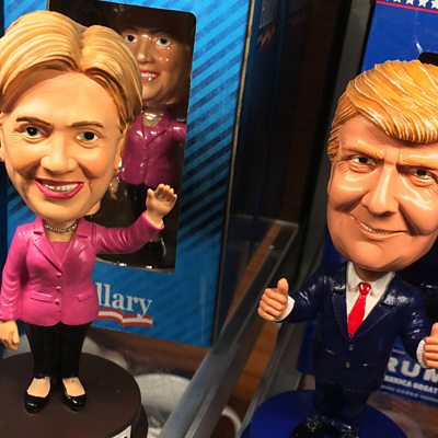 Hillary Clinton and Donald Trump are in Las Vegas, preparing to go head-to-head in the final presidential debate before the election in early November. What strategy might we see from each of them in their final chance to reach such a large audience? Anthony Zurcher - the ÃÛÑ¿´«Ã½'s Senior North America Reporter - gives his view from the spin room at University of Nevada, Las Vegas. (Photo: Figurines of Donald Trump and Hillary Clinton. Credit: Karen Bleier/AFP/Getty Images)
