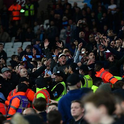 Hear one supporter's account of another troublesome night at the London Stadium. West Ham beat Chelsea 2-1 in the fourth round of the EFL Cup but the victory was marred by crowd trouble. Ian, a Chelsea supporter who was caught up in the trouble said: "It was like being back in the 1970s. The amount of coins that were thrown, seats that were thrown, it was an absolute nightmare." But Ian did admit that there were some people in the ground actively looking for trouble, adding: "I think there were people there who were on the lookout for trouble. If trouble was going to be there, they wanted to be at the front of it." This clip was taken from 5 live Sport on Wednesday 26 October 2016.