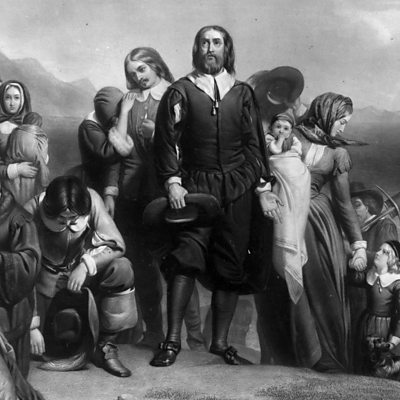 The holiday established in the US to mark the 1620 landing of the Mayflower in Plymouth, Massachusetts, has a complicated history. What does it stand for in these challenging political times? Dan speaks to pilgrim historian Donna Curtin and Mayflower descendant Scott Standish Aldrich (Image: The Mayflower pilgrims landing in New England on 19th November 1620. Original painting by Charles Lucy. Photo credit: Three Lions/Getty Images)