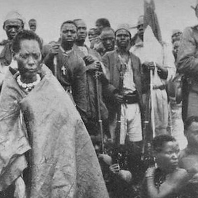 How much do you know about the rebel Queen Muhumuza from southern Uganda? Dr Aaron Mushungyesi, from the Universities of Makerere and Cambridge, can enlighten you. Photo: Queen Muhumuza in centre, with women and other followers, including askaris from the King's African Rifles, a British colonial force. Credit: The Uganda Society UgS (Photo is from the book in its library "On the Congo Frontier", by Evan Maclean Jack, 1914)