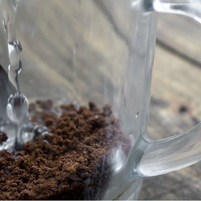 Helen Czerski demonstrates how coffee granules can change the speed of sound in hot water (Image: Coffee granules in a glass with water being poured in. Credit: ThinkStock)