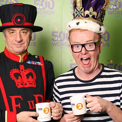 Chris launches 500 Words 2017 with the help of Chief Yeoman Warder Alan Kingshott.
