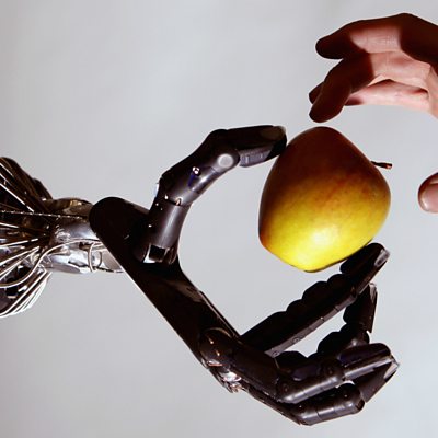 Robots, artificial intelligence and automation are spreading beyond the assembly line to compete for many of our jobs. Economists forecast that as many as half of current jobs in the developed world could be lost to computers in a generation, and as many as two-thirds in manufacturing-heavy China. But what about the new jobs that will emerge? And could we be at the threshold of a world in which robots do all the unpleasant work leaving us free finally, in the words of JM Keynes, to learn how to live ‘wisely, agreeably and well’? (Photo: Robot hand holding an apple. Credit: Getty Images)