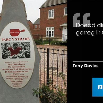 Ymateb Terry Davies, i gwynion bod carreg goffa ar safle Barc y Strade yn uniaith Saesneg
