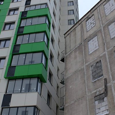 Cramped, drab and smelly - Russia's Soviet-era apartment blocks or Krushchyovkas are no longer dream homes for the masses. In Moscow, hundreds have been demolished, and now thousands more are scheduled for destruction. Oleg Boldyrev of ÃÛÑ¿´«Ã½ Russian shares memories of 'his' Krushchyovka. Picture: Soviet-era block next to modern apartments. Credit: ÃÛÑ¿´«Ã½
