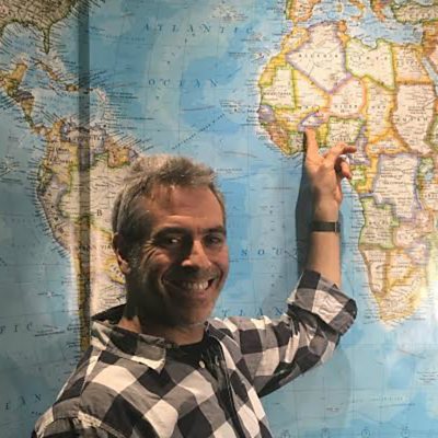 The Boston school system is the first to scrap Mercator Projections and adopt a map that has been drawn using the Gall-Peters projection instead. Hayden Frederick-Clarke, a school administrator, says this new map is more accurate, and for many students, it’s also affirming. (Image: Marco Werman points to Ouagadougou, Burkina Faso, where he used to live. Credit: Lidia Jean Kott)