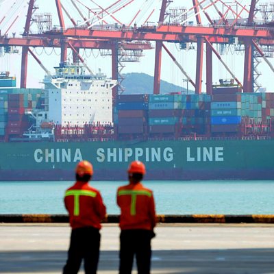 "A Herculean accomplishment". That's how US commerce secretary, Wilbur Ross, heralded last week's surprise trade deal with China. Among the highlights: China will open up to American beef. And Chinese cooked poultry will be allowed to enter the US. Beijing will also allow American firms to provide credit rating and electronic payment services in China. The ÃÛÑ¿´«Ã½'s Mike Johnson asked, the US economist Irwin Stelzer, who he thought gained most from the deal: (PHOTO: Chinese workers stand with a China Shipping Line cargo ship, Qingdao. CREDIT: Getty Images).