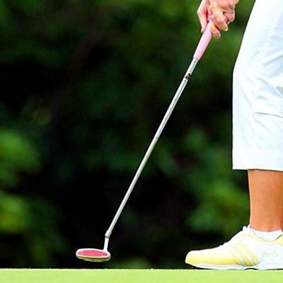 Geraint Lloyd yn holi Elin Wiiam sydd yn dysgu sut i chwarae golff yn y Bala.