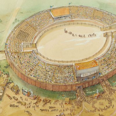 Anu Anand explores the traces of the Roman Empire left in London. Roger Tomlin of Oxford University describes his work deciphering inscriptions on the Bloomberg Writing Tablets, excavated in the heart of the city by MOLA (Museum of London Archaeology). Jackie Keily of the Museum of London shows off the remains of London's Roman Amphitheatre under Guildhall Art Gallery. (Picture: Artist's impression of London's Roman Amphitheatre. Credit: City of London)