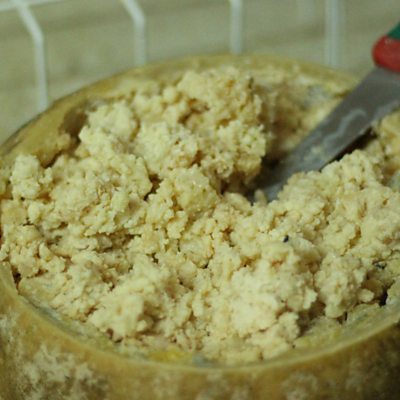 Casu Marzu is a traditional Sardinian cheese made by the digestive action of the larvae of the cheese fly Piophila casei. It is often described as the world's most dangerous cheese as the larvae can jump up to 15cm in the air, and the cheese is typically eaten when they are still alive. None of that put the ÃÛÑ¿´«Ã½'s Vivienne Nunis off trying some. (Image: A wheel of Casu Marzu. Copyright: Vivienne Nunis)