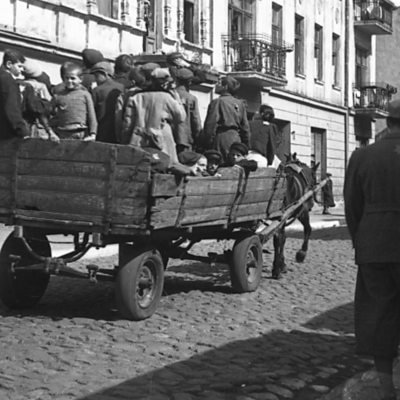 Picture 160,000 people living in less than four square kilometres. This was the size of the Jewish ghetto in Lodz, Poland, during World War II. The Nazi’s considered it as a model ghetto, sealed off from the rest of the town by walls and wire fencing, a city within the city. One man, though, dared to photograph what life was really like there. Nina Porzucki went to an exhibit of his work at the Museum of Fine Arts Boston. (Image: Children transported to the Chelmno nad Nerem death camp. Credit: Henryk Ross/Courtesy of the Museum of Fine Arts Boston)