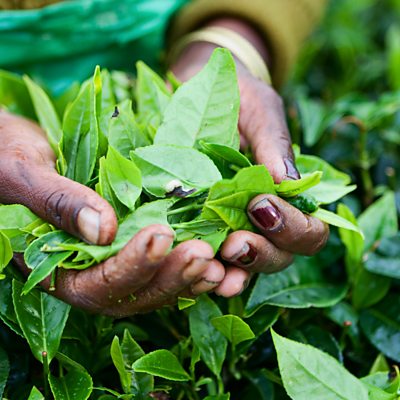 Tea grower Jonathan Jones reveals how fresh leaves are transformed into tea. (Image: Hands holding picked tea leaves. Credit: Getty Images)
