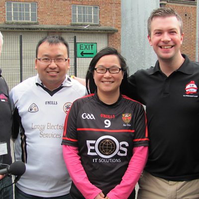 Gaelic football fans Chen Chi and Jiang Xuefang, Chinese staff from the Confucius Institute at Ulster University, enjoying the Down v Armagh game in Newry on 4th June 2017.