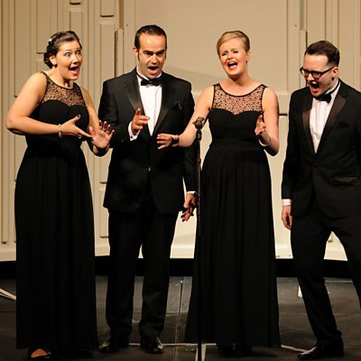 Barbershop quartet, Hannah and the Hurricanes perform the traditional hymn, O love that wilt not let me go in a close harmony style