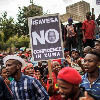 Sihle Zikalala of the ANC discusses how the ANC should react to the allegations of corruption against President Jacob Zuma and the prominent South African business family the Guptas. This was recorded during a World Questions debate in Johannesburg in August 2017. (Picture: Demonstrators at a protest against South African president Jacob Zuma Picture credit: GIANLUIGI GUERCIA/AFP/Getty Images)
