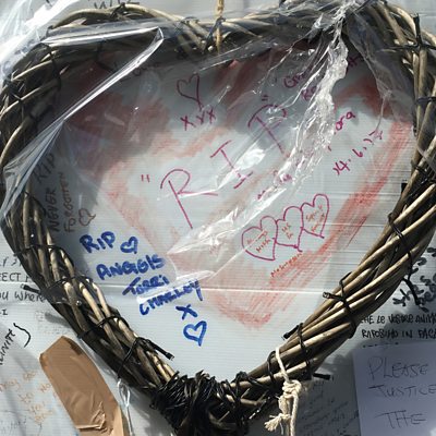 Hassan-Hassan is originally from Sudan. He lived with his wife and two daughters in Grenfell Tower, London. He recalls hearing from his wife on the night of the fire, when he was in Egypt visiting his brother. Photo: Messages left in tribute for victims of the Grenfell Tower fire Credit: Samuel Hauenstein-Swan