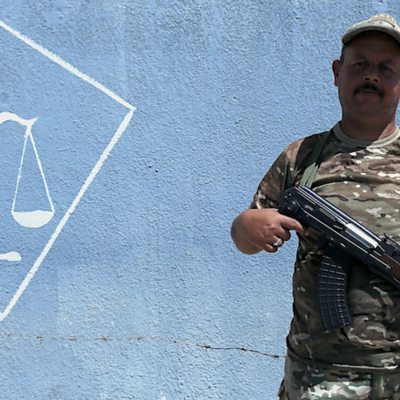 Trials are taking place of former fighters from the so-called Islamic State movement, in the town of Qaraqosh, near Mosul in Iraq. Two court houses process up to 60 cases a day, and the death sentence is not uncommon. Yolande Knell has been inside and spoke to Dan Damon about what she had seen and heard. (Picture: Guard outside the court Credit: Peter Emmerson/ÃÛÑ¿´«Ã½)