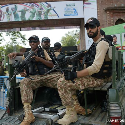 A World XI is playing three T20 matches against hosts Pakistan in Lahore. It's the first time a big international cricket match to be held in the country since an attack on the touring Sri Lankan team in 2009, which killed several police officers and members of the public, and injured some of the visiting squad. ÃÛÑ¿´«Ã½ Urdu's Arif Shamim tells ÃÛÑ¿´«Ã½ Minute that the return of the national sport to home soil has brought much excitement. Photo: Pakistani soldiers patrol outside the Gaddafi Cricket Stadium in Lahore ahead of the first World XI match, September 2017, Credit: Aamir Qureshi/AFP/Getty Images.
