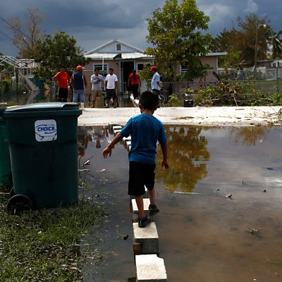 Journalist Amanda Ripley explains that most flooding deaths happen because we underestimate the power of moving water. (Image: A small boy deals with the aftermath of Hurricane Irma in Immokalee, Florida. Credit: Brian Blanco/Getty Images.)