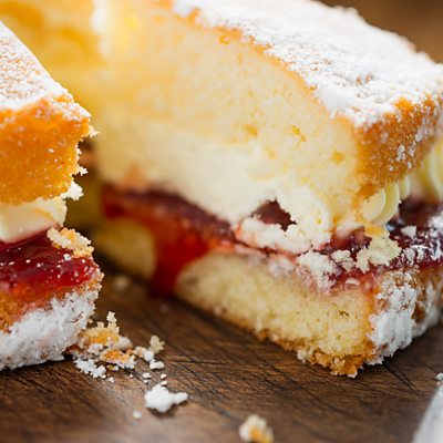 Radio 4 continuity announcer Neil Sleat succumbs to the relentless advances of this Victoria sponge. From 'The Curious Cake-Off' in which Rutherford & Fry discover how to bake the perfect cake using science.
