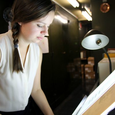 A curator found more than 2,000 notebooks left behind in a Harvard library. They belonged to Harvard's first women "computers," who studied the stars more than 40 years before they had the right to vote. Alex Newman reports. (Image: Curator Lindsay Smith Zrull places a glass plate photograph of a section of the sky onto a lightbox. Credit: PRI’s The World)