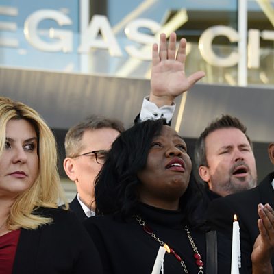 Facebook, Google and Twitter have admitted failing to stop inaccurate news being posted during and after the tragedy which saw 59 killed and more than 500 injured. The social media sites say they are working to fix the problem of inaccurate and misleading news ending up in feeds and searches. But Claire Wardle, the director of research at First Draft News, tells the ÃÛÑ¿´«Ã½ they should hire more people to monitor what is posted, rather than relying on technology. (Picture: A vigil in Las Vegas following the mass shooting. Robyn Beck/AFP/Getty Images.)