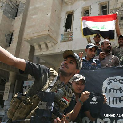 The Iraqi government has reclaimed one of the Islamic State group's last two enclaves in the country. The country's Prime Minister says the recapturing of Hawija means only areas on the outskirts of the town are in the militants' hands. ÃÛÑ¿´«Ã½ Minute asks ÃÛÑ¿´«Ã½ Arabic's Mouna Ba if this marks the end for IS in Iraq. Photo: Iraqi soldiers take a selfie holding the so-called Islamic State flag upside down, Credit: AHMAD AL-RUBAYE/AFP/GETTY IMAGES