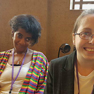 Lorna has autism and a learning disability. A keen worker, Lorna is very proactive and independent around her job searching and is determined to have a career in administration. She is supported by the 3 Cs Charity and is the Administrator of their Social Inclusion Task Force. She works on the Task Force alongside her friend Becky who is the Chair. Becky has a learning disability and speech impairment. She is working part time in a pub, a role she very much enjoys and is keen to turn into full time work. Her dream role is to work in catering or with children and she has been dedicated to building up her experience in these areas. During their conversation they discuss their ambitions, the difficulties they have faced and what changes they would like to see in society and the workplace.