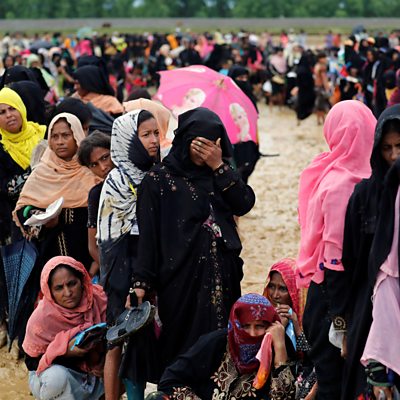 Warning: graphic content. Pulitzer prize winning reporter Jeffrey Gettlemen tells James Menendez about one of the horrific stories he heard from Rohingya refugees who had escaped to Bangladesh from Myanmar. (Photo: Rohingya refugees queue to receive food at a camp near the border of Bangladesh and Myanmar. Credit: Reuters)