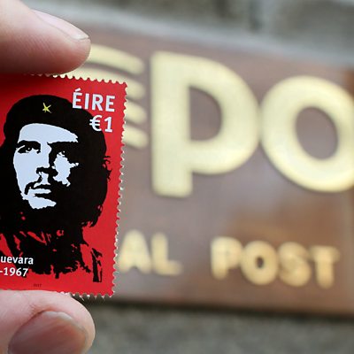 Che Guevara was a famous -- some would say infamous -- Latin American revolutionary. He helped lead the communist revolution in Cuba in the 1950s. He was subsequently caught and executed for trying to launch a revolution in Bolivia. So why is he now being honoured in Ireland? Chris Woolf explains. (Image: A stamp featuring Ernesto 'Che' Guevara is held up outside the General Post Office in Dublin, Ireland on October 10, 2017. Credit: Paul Faith/AFP/Getty Images)