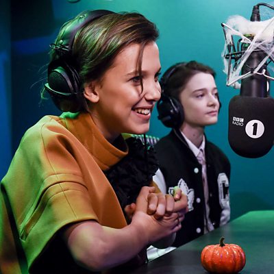 Grimmy says the name of a famous person then Millie Bobby Brown and Noah Schnapp say if they've had a selfie with them. It might have been easier to ask who they haven’t had their picture taken with!