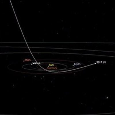 Scientists may have discovered the first comet or asteroid from outside our solar system. It is less than 400 metres in diameter and is travelling at 25 kilometres per second. It flew past Earth on October 14th at a distance of about 24 million kilometres. Robert Weryk from the the University of Hawaii was the first to identify the object. (Photo: The path of A/2017 U1, the interstellar object as it passed through our inner solar system. Credit: NASA/JPL-Caltech)