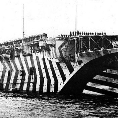 Dan Damon finds out how special paintwork on British ships helped deter Nazi attacks. (Picture: Large ship with dazzle markings (black and white) Credit: Getty Images)