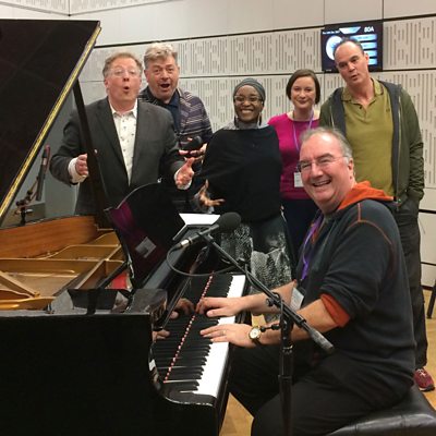 Oh My Darling Clementine but not as you know it! Matthew Sweet and his Saloneers in full cry. From left to right - Matthew, David Aaronovitch, Malika Booker, Katie Cooper, Jake Arnott and Neil Brand, piano.