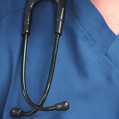 Chair of the Royal College of GPs Professor Helen Stokes-Lampard tells Radio 4's the World at One that if 5% of people paused before picking up the phone, it could free up 50,000 appointments. This comes after the Royal College says the public should take three steps to try to solve a health problem before seeing their GP: either sort it themselves, see a pharmacist or use a reputable online source of information. (Image: Person wearing a stethoscope, credit: PA)