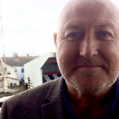 Russell Slade talking to John Tondeur after a 3-0 defeat in League Two.